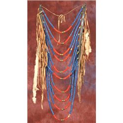 Northern Plains Woman's Necklace. 35" long with 12" beaded fringe. Beautiful hair pipe necklace, with early trade beads & an abalo...
