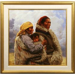 Jie Wei Zhou (1962 - ). Tibetan Family. 30" x 30" oil on canvas. Signed lower right: Jie Wei Zhou . Condition reports can be viewed at...