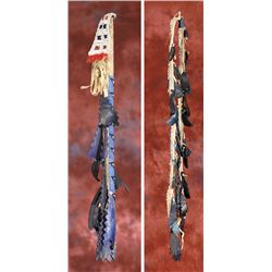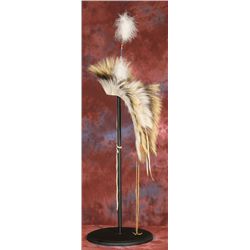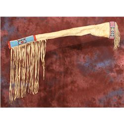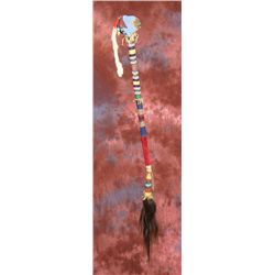 Blackfoot Dance Club. 22" long with a fully beaded stone head. Decorated with an ermine drop on the top & a 13" fringed drop with bead...