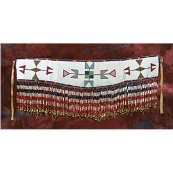 Sioux Saddle Drape. 43" x 13". Fabulous beadwork on Indian tanned hide. 18" of fringe on both ends, 2" fringe on the sides. 19th...