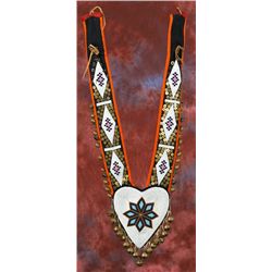 Blackfeet Martingale. 8" x 7" heart shaped central panel with two 21" straps. Heart panel is beaded on hide. Early trade wool straps ...