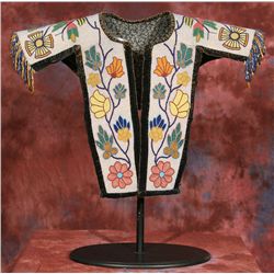 Blackfeet Child's Cape. 24" x 15". Fully beaded in floral designs. Rare style of cape with bugle bead fringe. 19th century. Beautiful!...