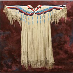 Plateau Dress. 48" x 45". Decorated with pony beads in classic colors. Accented with beaded drops, abalone disks, shells & hide. Lots ...