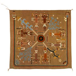 Crow Martingale. 40" x 18". Beaded designs in an array of colors on trade cloth. Backed in canvas and covered in brown paper with partial ...