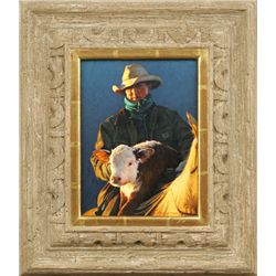 George Molnar (1953 - ). Safe In The Saddle. 12" x 9" oil on canvas. Signed lower right: George Molnar. Condition reports can be viewe...