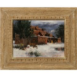 Earl Carpenter (1931 - ). Taos Winter. 12" x 16" oil on canvas. Signed lower right: Earl Carpenter. Condition reports can be viewed at...