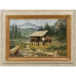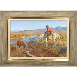 Gary Lynn Roberts (1953 - ). Coming Home. 24" x 36" oil on canvas. Signed lower right: Gary Lynn Roberts ©. Condition reports can...