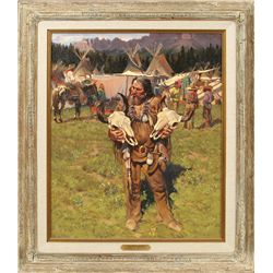 Irvin Shorty Shope (1900 - 1975) CA. There Were Teepees On The Flathead. 18" x 24" oil on canvas. Signed lower right: Irvin Shope '46 ...