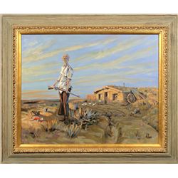 Don Crowley (1926 - ). Her Country. 24" x 30" oil on board. Signed lower right: © Don Crowley. Dated 1984 verso. Condition report...