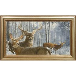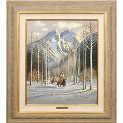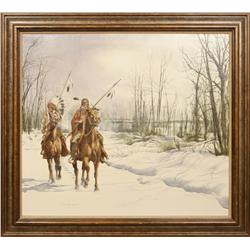 Anthony Sinclair (b. 1943). Moving Quietly On The Snow. 30" x 34" oil on canvas. Signed lower center left. (est $1,000-$2,000) Conditio...