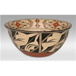 Zuni Dough Bowl. 16" diameter. heartline deer designs. circa 1930s. (est $1,000-1,500) Condition Report: Minor scratches at mouth and on bas...