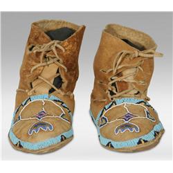 Sioux Baby Cradle. 21" long. Beaded strip on edge and nicely quilled strips on sides. 19th century, fine condition. (est $2,000-3,000) Condi...