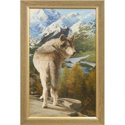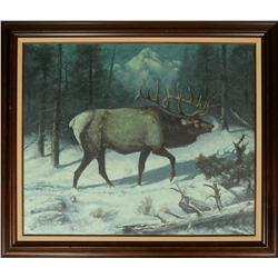 Fred Machetanz (1908-2002). The Challenger. 22" x 28" oil on board. signed & dated 1962 lower right. (est $2,000-3,000) Condition ...