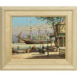 Samuel A. Moss (20th century). The Old Staten Island Ferry. 20" x 24" oil on canvas. signed lower right. (est $2,000-3,000) Condition R...