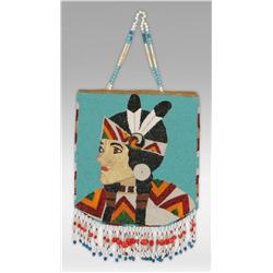 Yakima Beaded Bag. 15" long. Fine pictorial designs. Circa 1940s. (est $1,200-1,500) Condition Report: Excellent condition