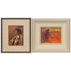 Buck McCain (b. 1943). Two Paintings. (1) Interloper. 24" x 30" oil on canvas. signed lower right. (2) Cowboy and Horse. 11" x 15 ...