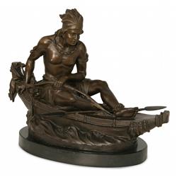 Duchoiselle (1800s). Indian Brave in Canoe. Bronze Sculpture. 11" x 15" x 6 ½" on 1" marble base. (est $2,000-4,000) Con...
