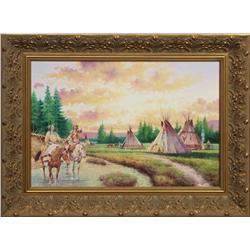 Glen Hopkinson (b. 1946). Moving Camp. 10" x 30" oil on canvas. signed and dated '95 lower right. (est $1,000-2,000) Condition Repo...