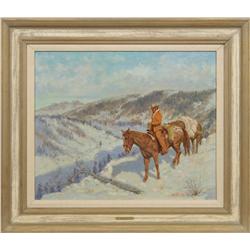 259 - Olaf Wieghorst, oil on canvasMarch in Montana
