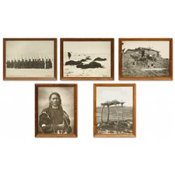 L. A. Huffman (1879-1931). Set of five 11" x 14" photographs. (1) Guard Mount in Buffalo Coats, Ft. Keogh, MT. circa 1880, signed lower ri...