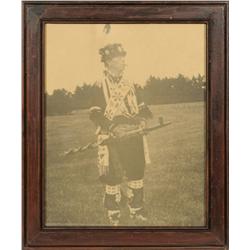 Photograph of Chippewa Chief. Fully decked out in ceremonial garb. circa 1880. 15" x 12". (est $600-900) Condition Report: Slightly fad...