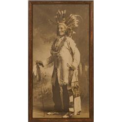 Genuine 1880s Indian Chief Photograph. 12 ½" x 6 ½". (est $500-800) Condition Report: Slightly faded, but no damage