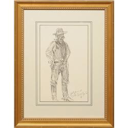 Joe Beeler (1931-2006), CAA. Cowboy Sketch. 10 ½" x 6 ½" pencil. signed & inscribed lower right. (est $600-900) Condition...