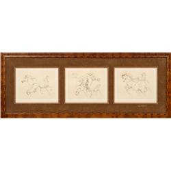 Daniel Cody Muller (1889-1977). Four Ink Drawings. (1) Cold and Hungry. 6 ½" x 8 ½", signed and dated 1938 lower right. (2) Hors...