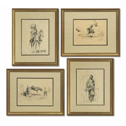 After Charles M. Russell, Four Pen and Ink Drawings411 - After Charles M. Russell, Four Pen and Ink Drawings