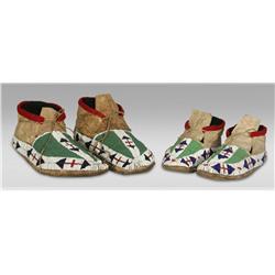 Sioux Father & Son Beaded Moccasins. Father: 10 ½", Son: 7". 19th century. (est $3,000-4,000) Condition Report: Some discolora...