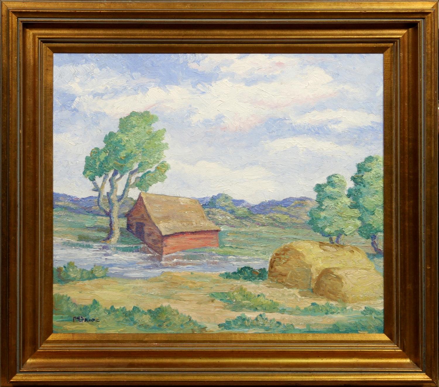 Margaret Anne Drake (20th century). River's Edge. 20" x 24" oil on board. signed lower left. (est $1,000-2,000). . Additional Information: Drake took classes with Birger Sandzen during the Fall of 1941 and Spring of 1942. Condition Report: Black lights clean. Excellent condition