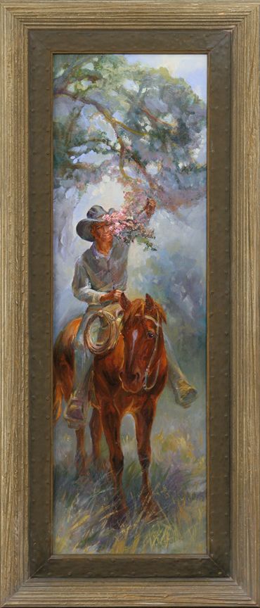 Marylee M. Moreland. Sweet Smell In Blossoms. 32" x 10" oil on canvas. Signed lower right: MORELAND ©. Condition reports can be viewed at www.marchinmontana.com/docs/2013CR.pdf