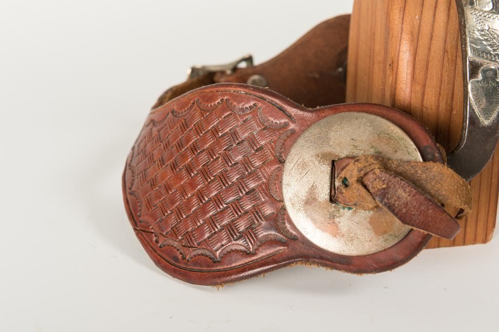 McChesney Gal-leg Spurs 2", 8 point rowels. Silver and copper mounted with embossed straps. Circa 1970s. $600-800 Provenance: Ex Bokelman Collection.