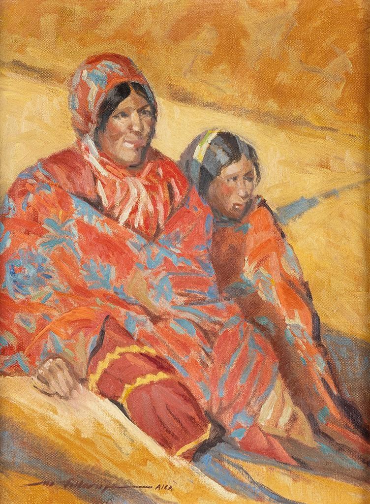 Mel Fillerup (1924-2010) Mother and Daughter 16" x 12" oil on canvas Signed lower left Verso: 11th Annual AICA Exhibition and Sale tag. Titled. $600-900 Provenance: Private Collection, Mountain Center, CA.