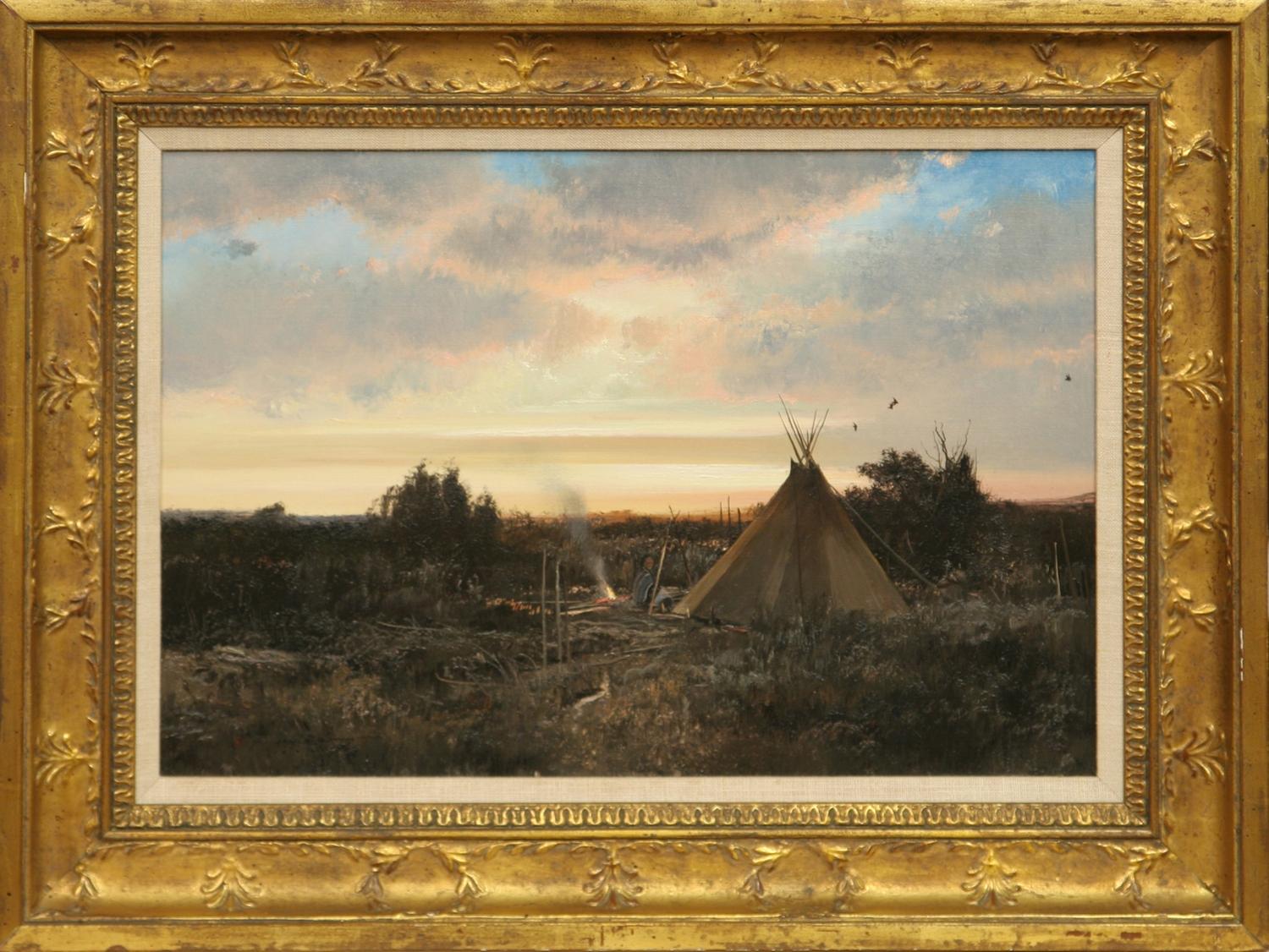 Michael B. Coleman (b. 1946). Sunset, 1890. 12" x 17" oil on board. signed lower left. (est $5,000-7,000) Condition Report: Black lights clean