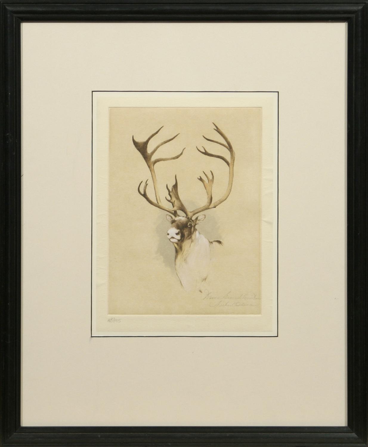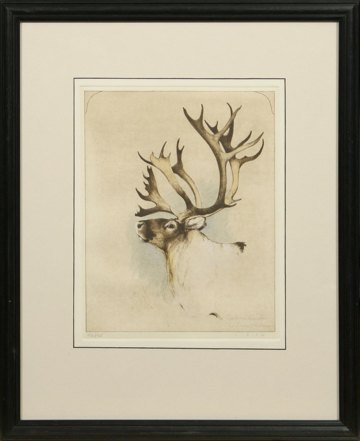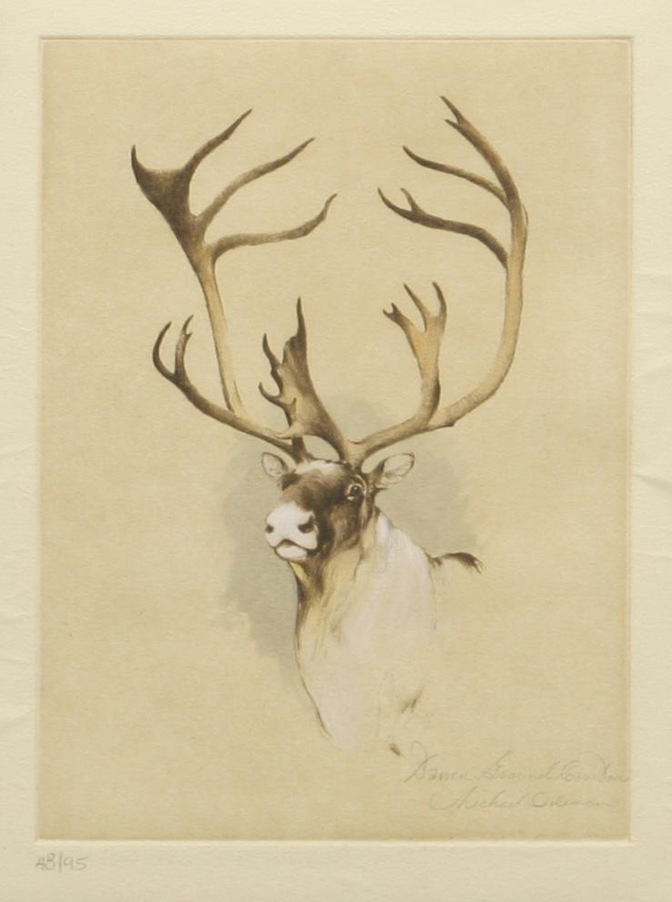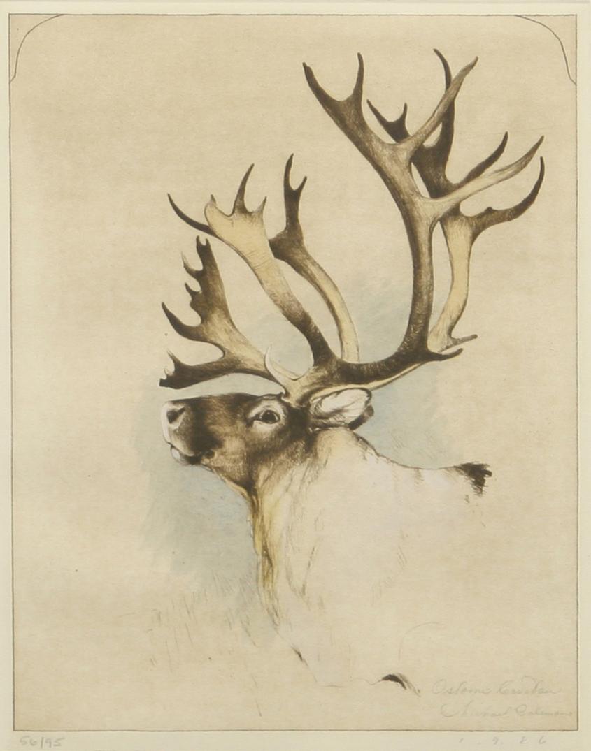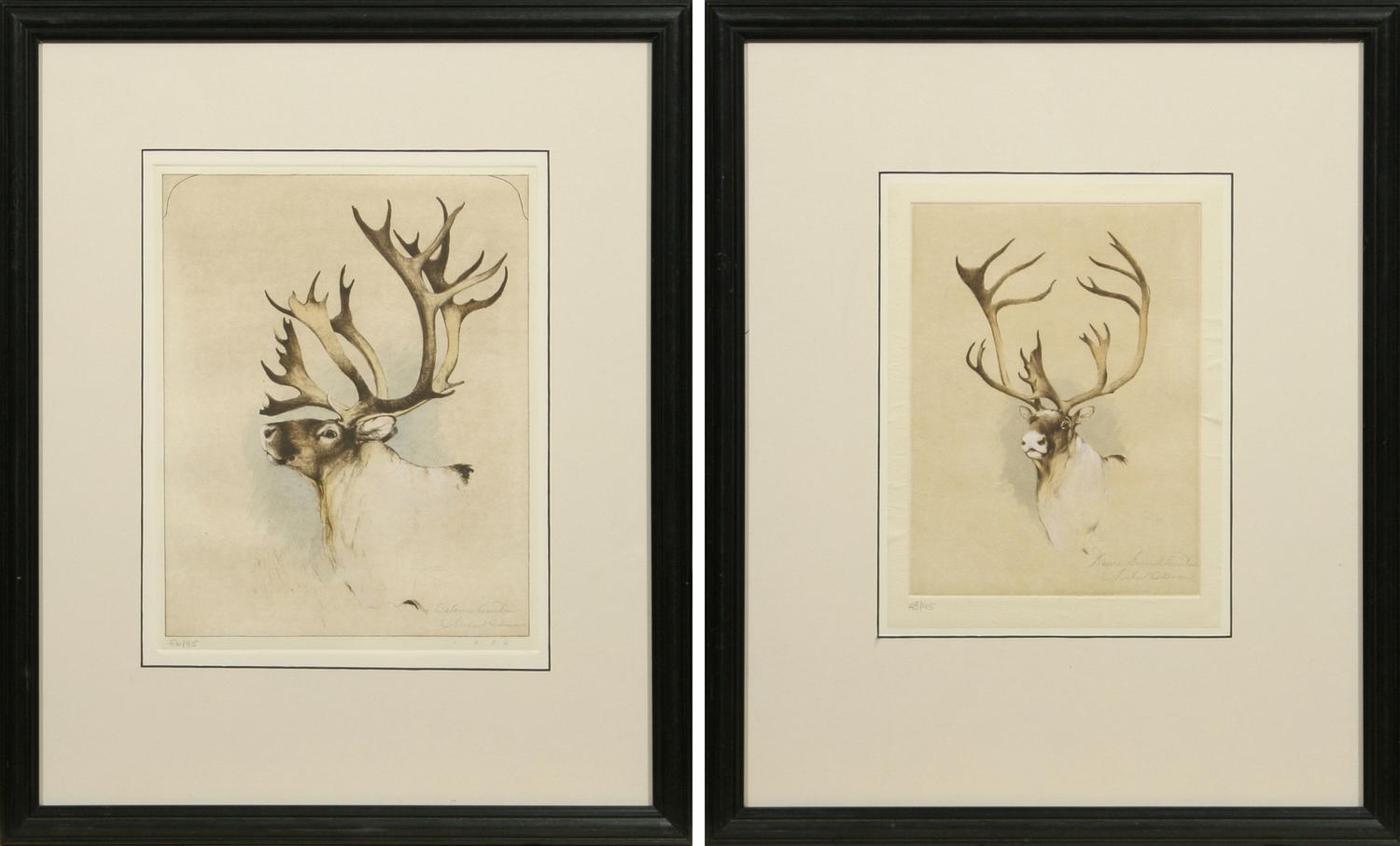 Michael B. Coleman (b. 1946). Two hand colored etchings. (1) Osborne Caribou. 12 ½" x 9 ½", #56/95. (2) Barren Ground Caribou. 11" x 8 ½", #48/95. each signed lower left. (est $1,500-2,500) Condition Report: Both pieces crisp and clear. Framed nicely and alike
