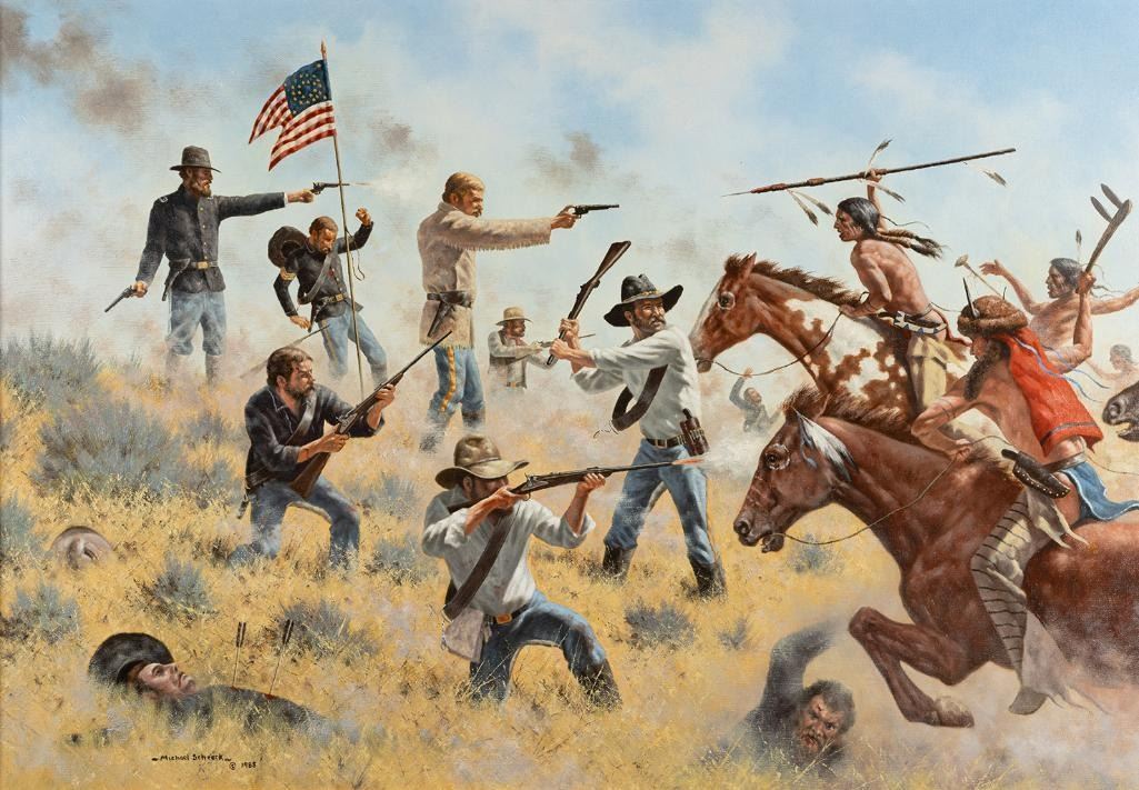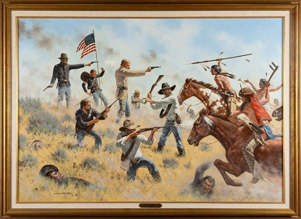 Michael Schreck (20th/21st C.) The Calhoun Command 28" x 40" oil on canvas Signed and dated 1985 lower left $2,000-3,000 Provenance: Estate of Gary Jacobson.
