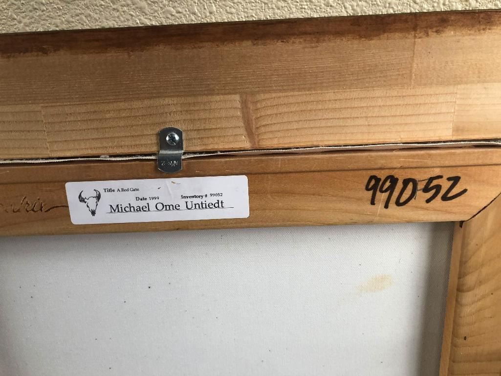 Michael Untiedt (1952 - ) The Red Gate 20" x 16" oil on canvas Signed lower right Verso: Signed and dated 1999. $3,000-4,000 Provenance: Painting is published on pg. 122 of the February 2001 issue of Southwest Art. A copy of the issue is signed by the artist and is included with the painting.