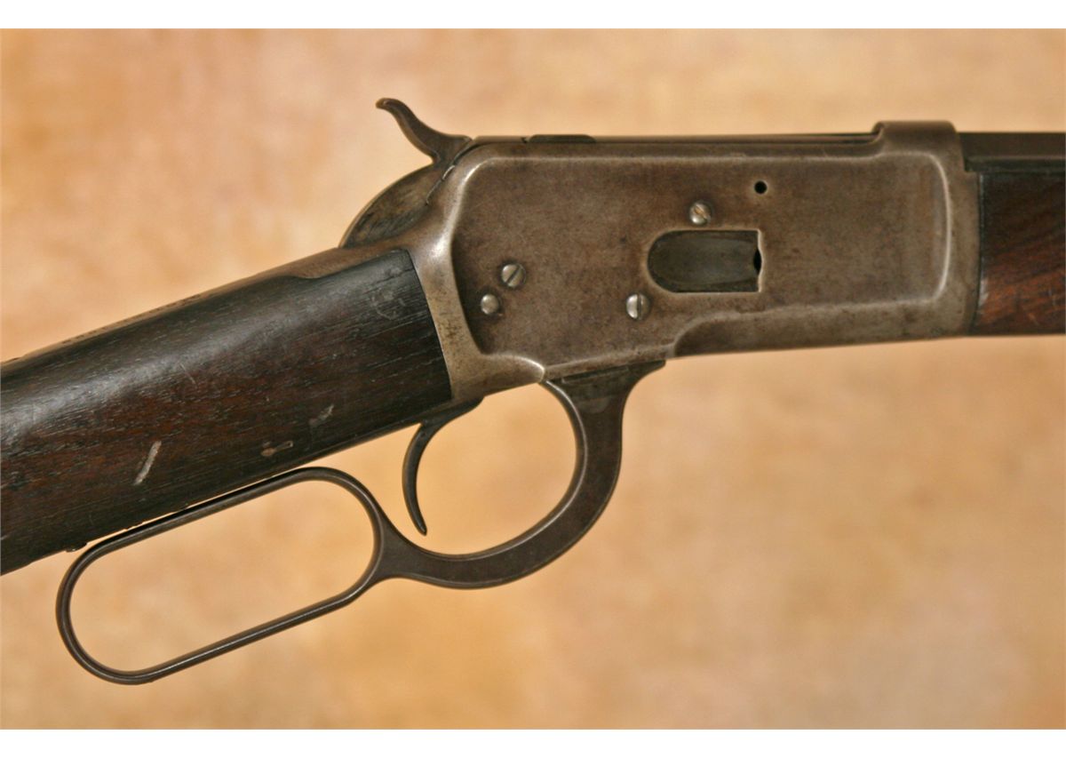Model 1892 Winchester Lever Action Rifle. .38-.40 calibre, 24" octagonal barrel. The top of the barrel is stamped with the two line New Haven address after the rear sight & "38 W.C.F." at the breach. The upper tang is stamped: MODEL 1892 -WINCHESTER- TRADEMARK in three lines. Serial number 286800 stamped on the underside of the frame. Manufactured in 1905. FFL required - additional fee. Condition reports can be viewed at www.marchinmontana.com/docs/2013CR.pdf