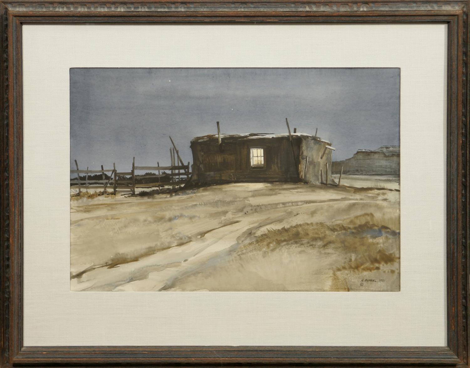 Morris Rippel (b. 1930). Camp At Mosquero Canyon. 16" x 23" watercolor. signed & dated 1971 lower right. (est $2,000-3,000) Condition Report: Excellent condition and in fine wood frame