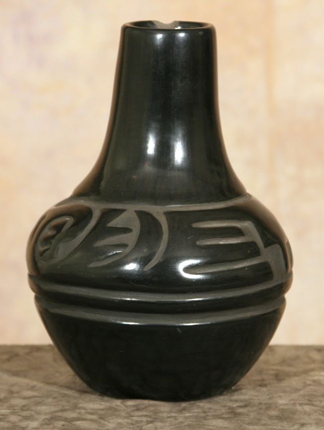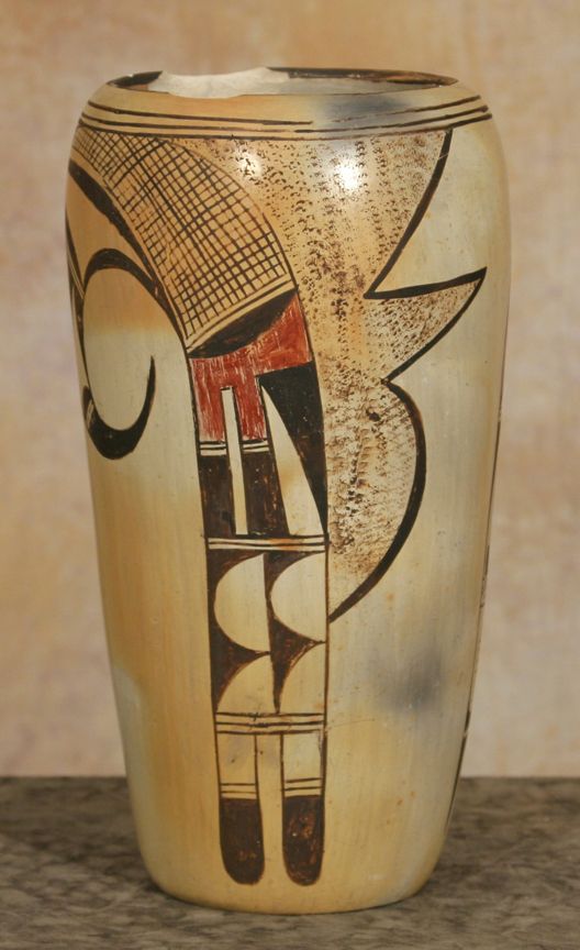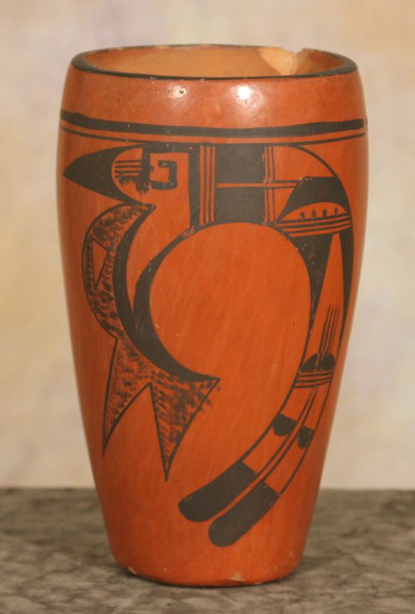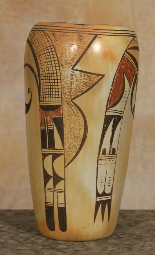 Native American Artistry Grouping. Hopi Polychrome Vase, 11.5" x 6.25", by Rena Leslie. Hopi Red on Black Vase, 7.5" x 4.5"