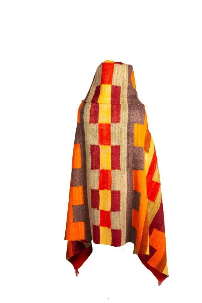 89" x 60" Transitional blanket with seven vivid colors. Displays beautifully on a blanket stand. This piece is roughly 130 years old and is woven from long-staple, Native Churro cross sheep wool. Circa 1890.