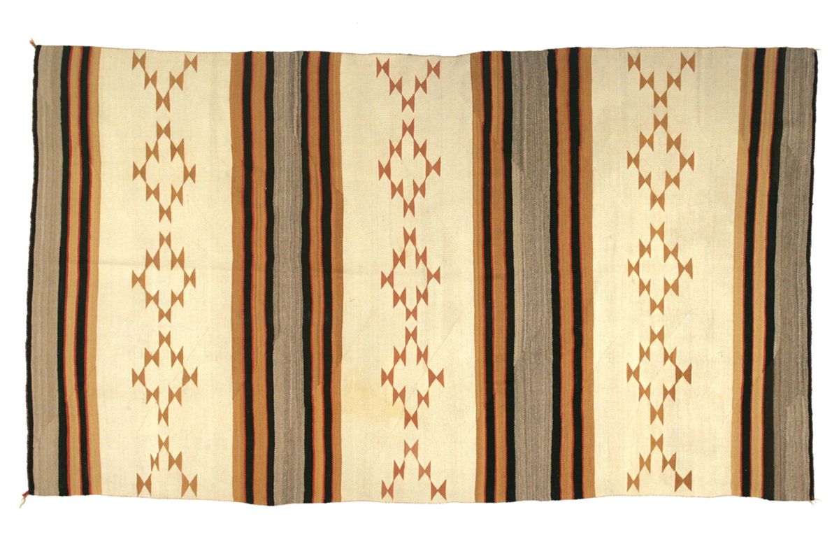 Navajo Chinle Revival Serape. 8' x 4'6". Woven in a classic three panel serape layout. Circa 1930. Condition reports can be viewed at www.marchinmontana.com/docs/2013CR.pdf