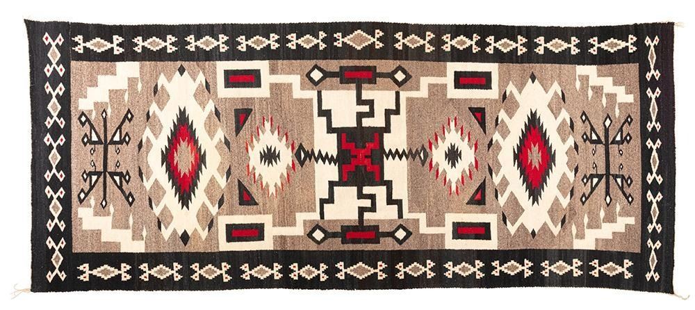 10'3" x 4'3" Storm Pattern weaving. Beautifully woven with a central storm pattern design surrounded by modified waterbug motifs. Intricately done and tightly woven.