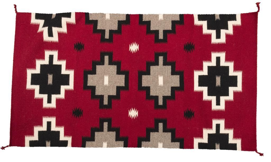 Navajo Rug 2'5" x 4'3". Chief's style weaving with original Trading Post tag woven by master weaver Sarah Yazzie. Circa 1975. $1,000-1,500