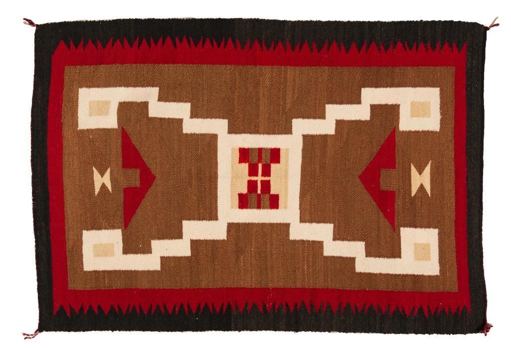 Navajo Rug 4'1" x 2'10". Storm Pattern weaving. Circa 1940. $600-800