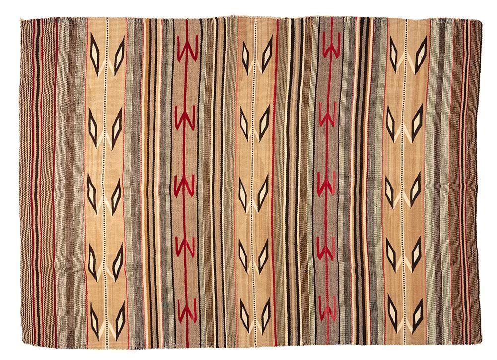 6'1" x 4'4" Chinle area weaving with typical banded designs. Circa 1940.