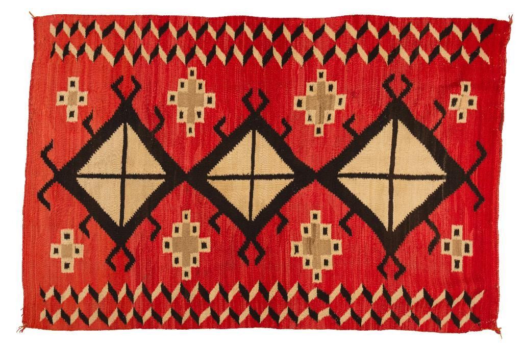 Navajo Rug 6'3" x 4'1". Crystal Area weaving with a red field. Circa 1900. $2,000-2,500