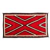 Navajo Rug 8'7" x 4'10". A striking red-field floor rug with a bold black & white serrated double Teepee motif in each half field. The side borders are an old-style reciprocal swallowtail design. Woven from all Native, long staple Churro and Churro cross sheep wool on a wool warp. Circa 1940. $2,000-3,000