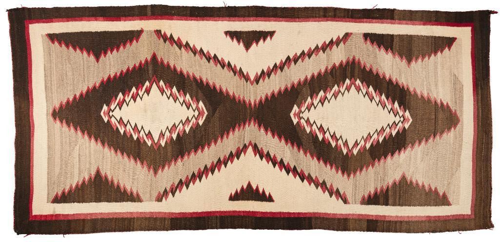Navajo Rug 8'8" x 4'1". Western Reservation weaving with a serrated diamond design. Circa 1920. $1,500-2,500